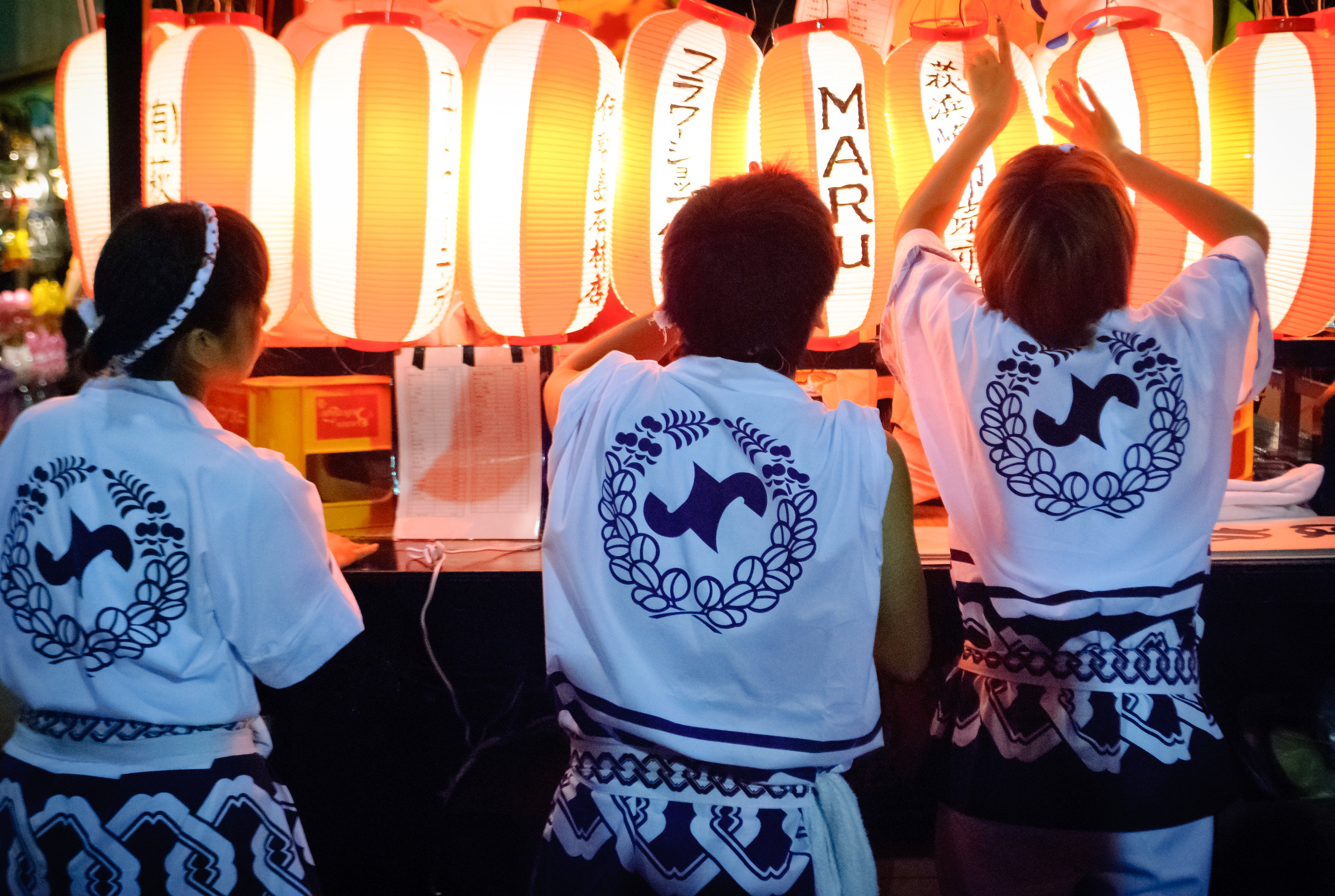 With the lights of Tokyo twinkling on the horizon it was time to head to where I am teaching for the year- Hagi, in the south west of Honshu, Yamaguchi prefecture. Hagi is a little different from Tokyo- a quaint little place on the beach where you can cycle just about everywhere. On the first evening in our new home we were greeted with a festival. Colourful lanterns lit the streets and floats with Geisha’s and Shamisen players paraded the town centre pulled by some tired looking men in white robes. The whole town was there- out in traditional attire, revelling in the atmosphere, playing games and eating yummy food. We experienced both the good and bad of standing out- on the one hand the stares sometimes veered from inquisitive to uncomfortable, but on the other, our celebrity status lead a jolly man running a game stall to insist we try, for free, and when we didn’t win gave us the prize anyway.
