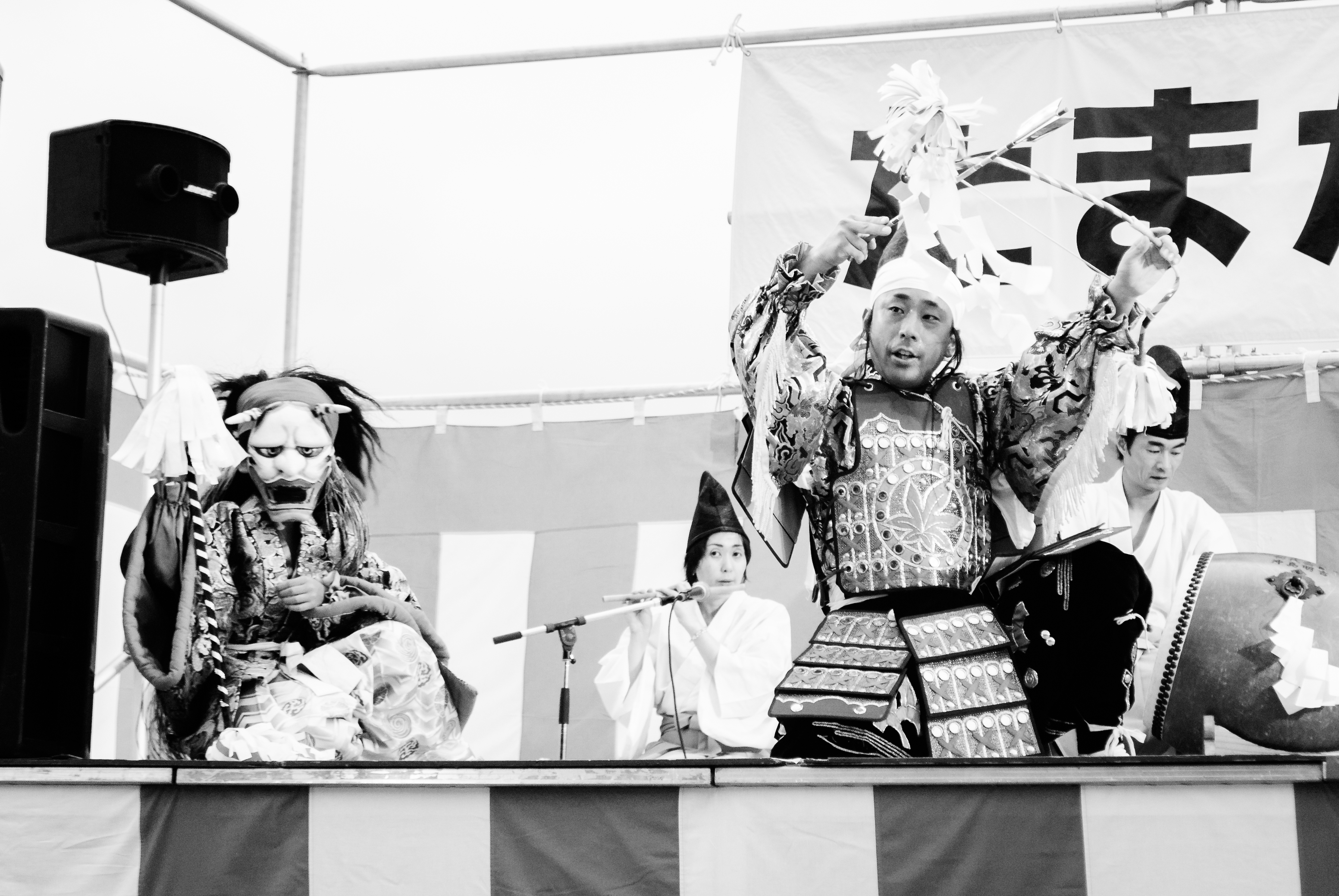 Bored one evening, we heard about a little festival in a town nearby and thought it might be fun. A twenty minute train ride later and we were treated to food, fireworks and people bustling and dancing in Kimono’s. The highlight of the evening was my first look at Kabuki theatre- a silent story set to war like drums. As far as I could tell some brave samuri warriors were struggling to overcome evil demons, battling back and forth. I managed to get a few pictures-