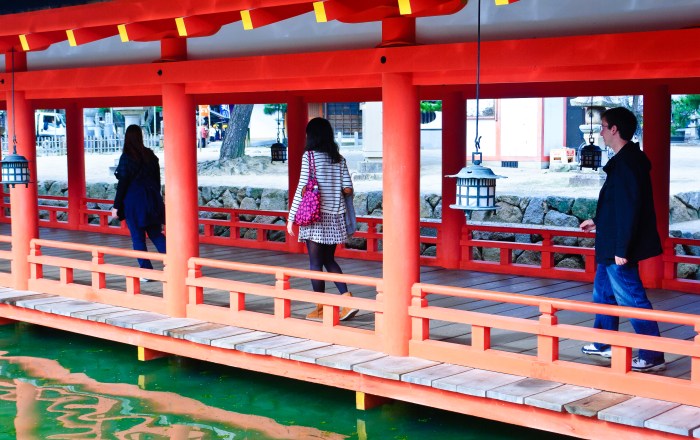 Following on from my previous pictures of the Itsukashima Shrine (Click to see them) I took this shot. I thought it would be an interesting composition, to mingle the shrines many columns with its wandering admirers. I had to wait a little while, but eventually the shot fell into place- capturing each passer by in their very own picture frame.