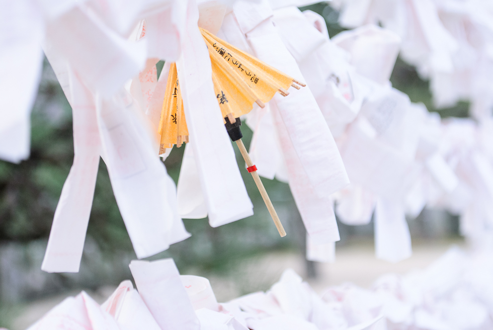 Instead of in the trees the colourful cocktails umbrellas are mingling with wishes and fortunes, attached hopefully to ritual temple adornments. A bit like in one of my old posts – ‘Wishes’.