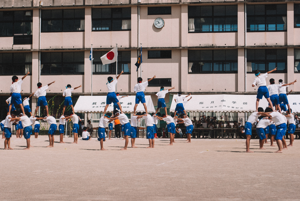 A Japanese School sports day, undōkai (運動会) in Japanese, is a sight to behold. In England you get a host of traditional events – running, jumping and throwing. Stuff you get in the Olympics. You might get a few events thrown in for fun, maybe a three legged race or the chance for the students Dad’s to fight it out in a 100 meter dash. In Japan, it is a very different kettle of fish.
